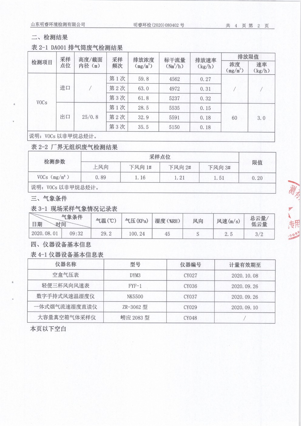 2020年8月VOC尾氣檢測